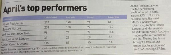 Sutton Kersh's April auction result positioned it in the top 5 best performing property auction houses in the UK according to statistics released by property journal Estates Gazette.
